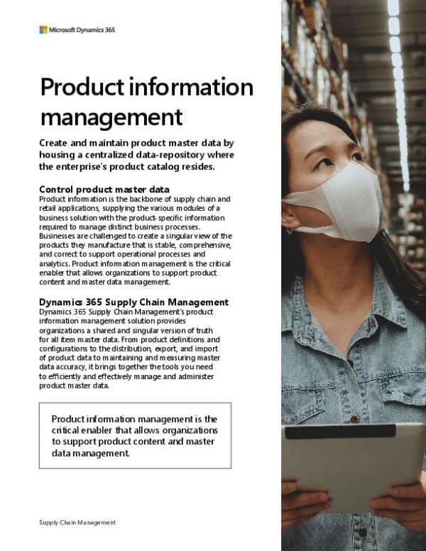 Get this datasheet for an overview of how Microsoft Dynamics 365 Supply Chain Management enables effective PIM as well as main benefits and key features.