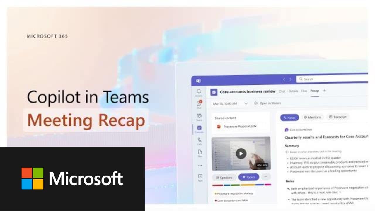 Watch this short demo video for a look at how quickly Copilot in Teams builds on the highlights available from Intelligent recap and helps you dig deeper into the meeting context so you can stay in sync on what comes next.