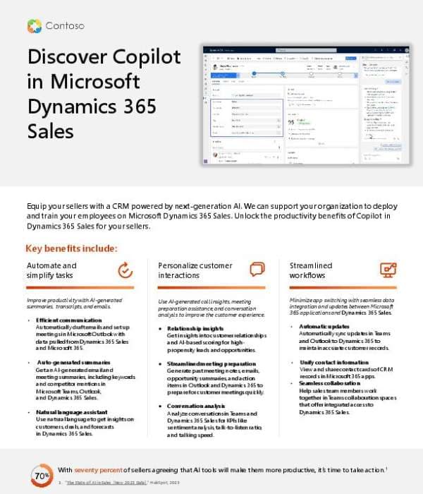 Sellers often struggle with manual tasks that reduce time spent with customers. This solution brief outlines how Copilot in Microsoft Dynamics 365 Sales automates key tasks — from drafting emails to generating meeting summaries and AI-based insights. Download the brief to see how Copilot boosts productivity and get in touch with NEUVOR to discuss how you can integrate these capabilities into your organization.